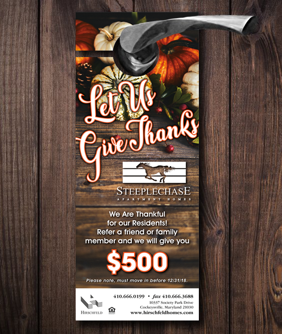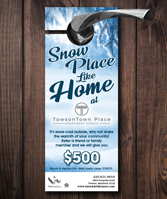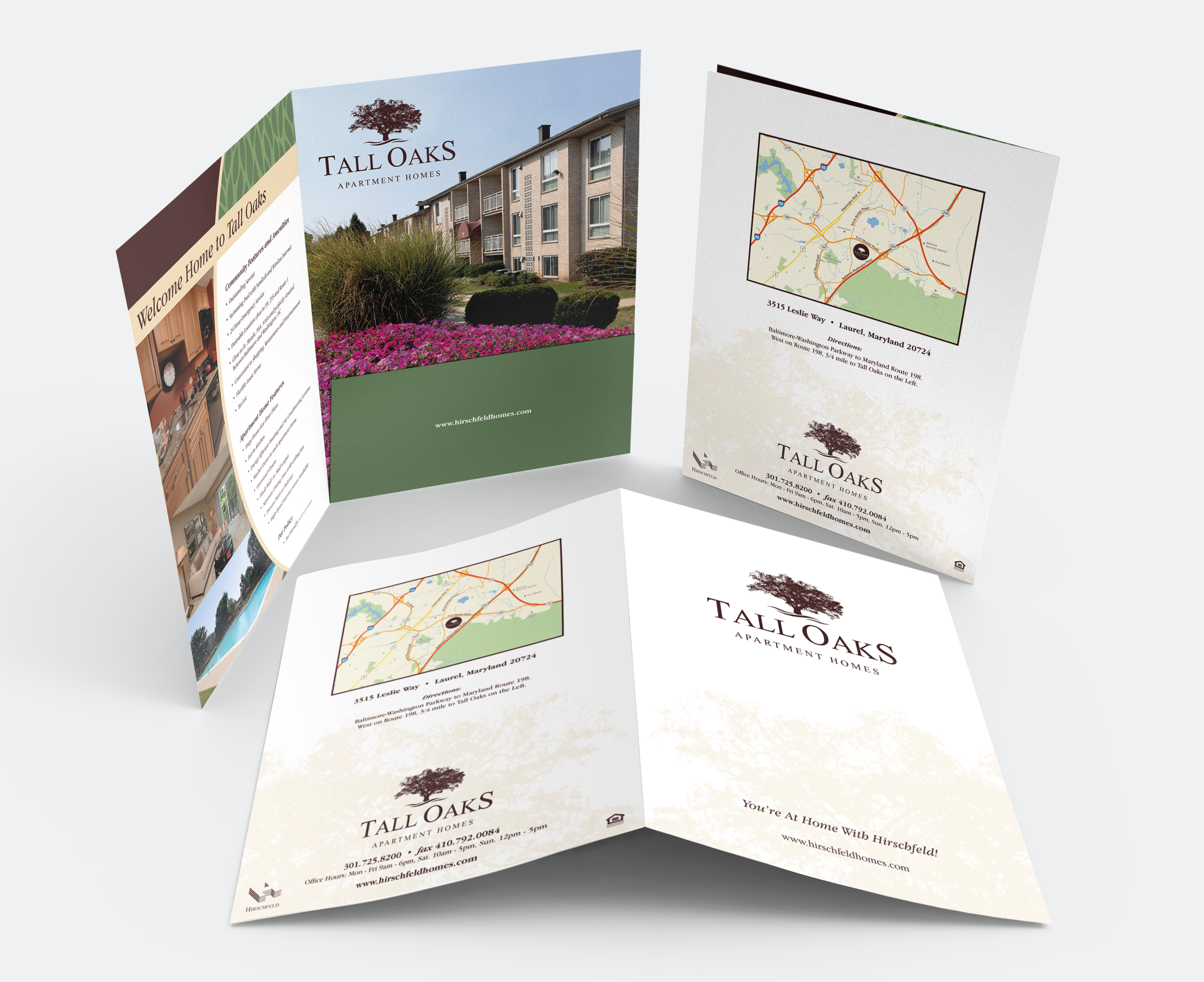 I have worked with Hirschfeld to help bring new life and design to their many properties that they manage while keeping the same feel throughout to create unity. Each property has a site map, pocket folder brochures, event signage, outdoor signage, etc.